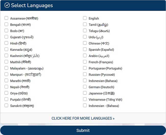 If your preferred language is not in the list then click on "CLICK HERE FOR MORE LANGUAGES »" link to see more languages like below: