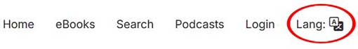 The website is in English. You can select one or multiple languages for books, podcasts, messages, and videos.