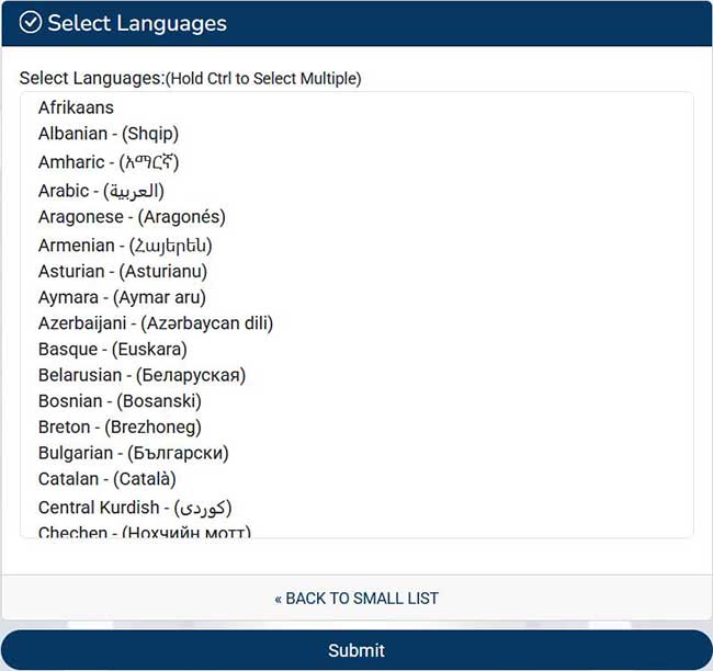 If your preferred language is not in the list then click on "CLICK HERE FOR MORE LANGUAGES »" link to see more languages like below: